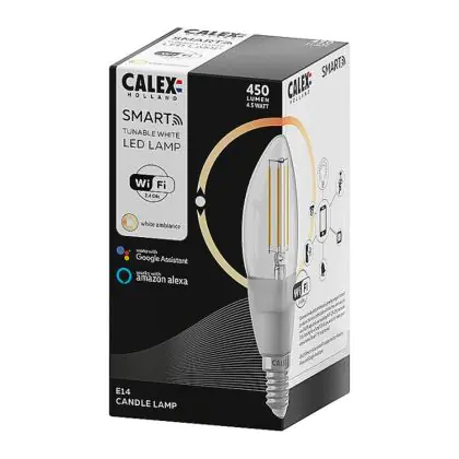 Calex Smart Tuya Wifi E14 Kerze Fadenlampe 4.5W 450lm - 818-830 Abstimmbares Weiß | Dimmbar - Ersatz für 40W