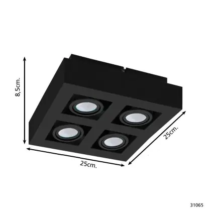 Eglo Decke Spot Mendoza Stahl Schwarz 18.8W 1380lm - 830 Warmweiß | Dimmbar - Geeignet für GU10
