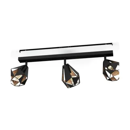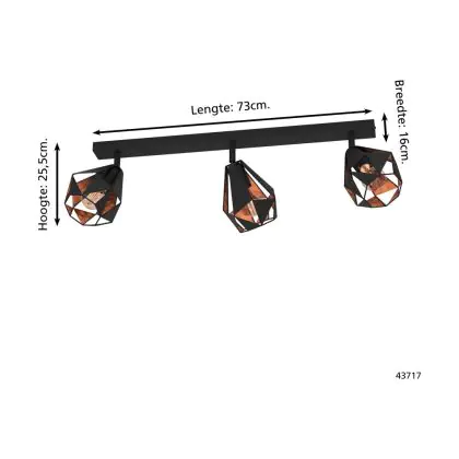 Beschreibung Eglo Deckenleuchte Carlton 7 Stahl Schwarz Bernstein | IP20 - Geeignet für 3x E27