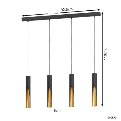 Eglo Pendelleuchte Barbotto Stahl Schwarz, Gold 18W 1380lm - 830 Warmweiß | Geeignet für GU10