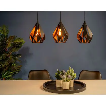 Die Eglo Pendelleuchte Carlton 5 Stahl Schwarz | IP20 - Geeignet für 3x E27 sorgt für eine angenehme Ausleuchtung und punktet durch modernes Design. Diese Leuchte ist speziell zur Montage an der Decke vorgesehen.
