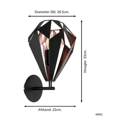 Beschreibung Eglo Wandleuchte Carlton 1 Stahl Schwarz Bernstein | IP20 - Geeignet für 1x E27