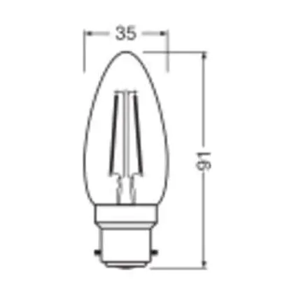 Die Ledvance Classic LED B22 Kerze Fadenlampe Klar 1.8W 250lm - 827 Extra Warmweiß | Ersatz Für 25W ist eine effiziente B22 (Bajonettsockel) LED-Lampe mit Retrodesign und der perfekte Ersatz für Ihre konventionellen 25W Lampen mit B22 (Bajonettsockel). Zudem strahlt sie Licht in der Farbtemperatur aus und punktet durch eine lange Lebensdauer.
