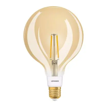Die Ledvance Smart+ Zigbee E27 Globe Classic Fadenlampe Gold 6W 680lm - 825 Extra Warmweiß | Dimmbar - Ersatz für 50W ist eine effiziente E27 LED-Lampe mit Retrodesign und der perfekte Ersatz für Ihre konventionellen 55W Lampen mit E27. Zudem strahlt sie Licht in der Farbtemperatur 2400K - Extra Warmweiß aus und punktet durch eine lange Lebensdauer.