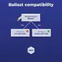 Vorschaltgeräte dienen der Strombegrenzung und ermöglichen zudem die Zündung der Lampen. Sie sind als separates Bauteil erhältlich oder bereits in der Lampe verbaut. Konventionelle Vorschaltgeräte (KVG, EM) benötigen immer einen Starter, elektronische (EVG, HF) nicht. Universale (UN) Leuchtmittel können mit jeder Art von Vorschaltgerät betrieben werden. Bitte beachten Sie: Bei elektronischen Vorschaltgeräten müssen Sie in diesem Fall trotzdem die Kompatibilität der Komponenten überprüfen! Produkte mit dem Kürzel AC benötigen kein Vorschaltgerät und können an die Netzspannung angeschlossen werden. |