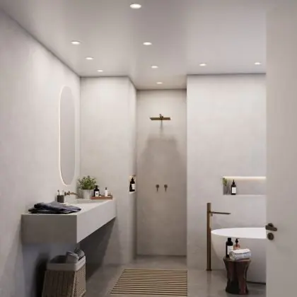 Die IP-Klasse gibt das Schutzlevel der Leuchte gegenüber Fremdkörper und Berührungen (erste Ziffer) und gegen Wasser (zweite Ziffer) an. Je höher die Ziffern sind, desto robuster und wasserabweisender ist die Leuchte. Ab dem IP44 ist der Spot unter bestimmten Bedingungen auch außen verwendbar - das Prädikat “wasserdicht” bekommt ein Einbaustrahler erst mit einem IP von mindestens 54.
