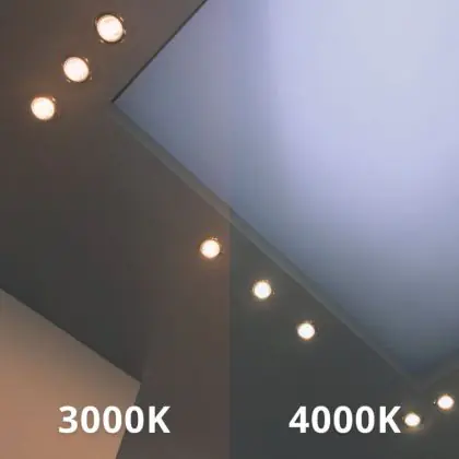 Der LED-Deckenspot kommt mit der Farbtemperatur 3000K - 4000K CCT daher. Als Faustregel gilt: Je niedriger der Kelvinwert, desto gemütlicher wirkt das Licht.