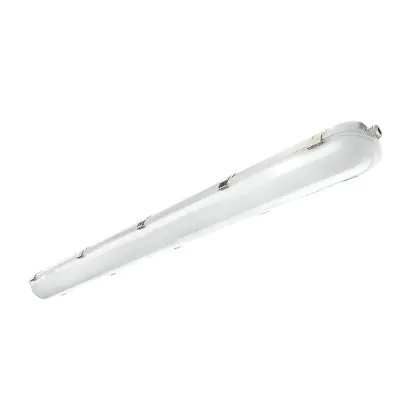 Die Noxion LED-Feuchtraumleuchte der Reihe Standard ist 120 cm lang. Sie ersetzt zwei konventionelle Leuchten à 36 Watt und verbraucht dabei selbst nur 36 Watt. Diese LED hat eine tageslichtweiße Farbtemperatur (6.500 Kelvin), womit auch Details naturgetreu wiedergegeben werden. Das Produkt ist IP65- und IK08-klassifiziert und kann auch in Außenbereichen angebracht werden.