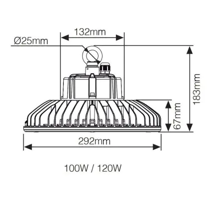 Mit 18.000 Lumen, der Einheit für Helligkeit, erreicht dieses effiziente Highbay einen sehr hohen Wert. Es ist ausgerichtet für industrielle Anwendungen und speziell für Bereiche mit hohen Decken (4-14 m) geeignet. Die Lichtausbeute von 150 lm/W bleibt bis zum Ende der Lebensdauer konstant hoch, ganz ohne Qualitätsverlust.