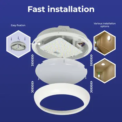 Die Noxion LED-Wand- und Deckenleuchte Pro V2 12/16/20W 2400lm - 830-840-865 CCT| 325mm - IP65 - Bewegungs- und Lichtsensor - 3 Stunden Notlicht + Ring Weiß ist eine Feuchtraumleuchte. Sie strahlt Licht in der Farbtemperatur aus und punktet durch eine lange Lebensdauer. Diese Leuchte ist speziell zur Verwendung in Feuchträumen (Keller, Waschräume, etc.) vorgesehen.