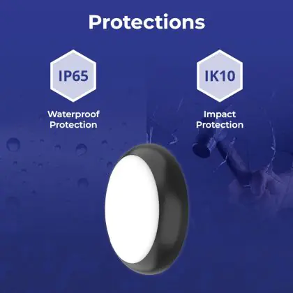 ![]() Die IK-Schutzklasse zeigt die Schlagfestigkeit einer Leuchte sowie den Schutz vor Vandalismus an. Sie wird in zwei Ziffern ausgedrückt (IK00 - IK10). Produkte mit IK00 sind somit nicht geschützt gegen Schläge oder Stöße jeglicher Art. Produkte mit IK10 bieten Schutz gegen Stöße von 20 Joule und sind gegen vandalismus-sicher. |