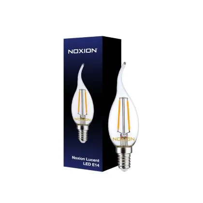 Die Noxion Lucent LED E14 Gebogene Spitze Kerze Fadenlampe Klar 2.5W 250lm - 827 Extra Warmweiß | Ersatz für 25W ist eine effiziente E14 LED-Lampe mit Retrodesign und der perfekte Ersatz für Ihre konventionellen 25W Lampen mit E14. Zudem strahlt sie Licht in der Farbtemperatur 2700K - Extra Warmweiß aus und punktet durch eine lange Lebensdauer.