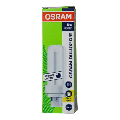 Die Osram Dulux D/E 10W - 830 Warmweiß | 4-Pins ist eine Kompaktleuchtstofflampe von Osram. Das Produkt mit 4 Pins strahlt Licht in der Farbtemperatur 3000K - Warmweiß aus und punktet durch eine lange Lebensdauer.