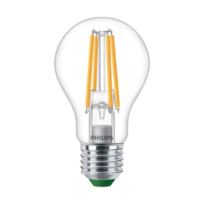Die Philips Master Ultra Efficient LED E27 Birne Fadenlampe Klar 4W 840lm - 827 Extra Warmweiß | Dimmbar - Ersatz Für 60W ist eine effiziente E27 LED-Lampe und der perfekte Ersatz für Ihre konventionellen 60W Lampen mit E27-Sockel. Zudem strahlt sie Licht in der Farbtemperatur aus und punktet durch eine lange Lebensdauer.